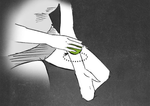 Apply pressure with the BALL on the forearm and twist it with constant pressure left and right. Hold in the final position of the twist for about 10s. Then release the pressure. Move along the forearm treating all the hotspots in this manner. Then switch sides.