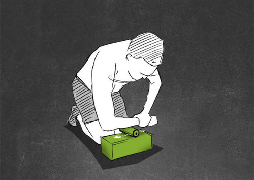 Get on all fours. Place the BLACKROLL® MINI just below the right knee. Plant your left foot on the floor just next to the right knee.