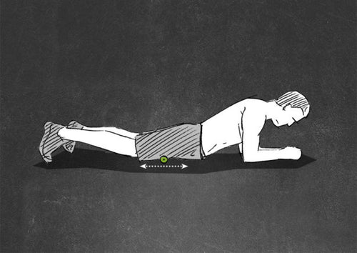 Start in a plank position on your ellbows and place your right quad on the MINI.