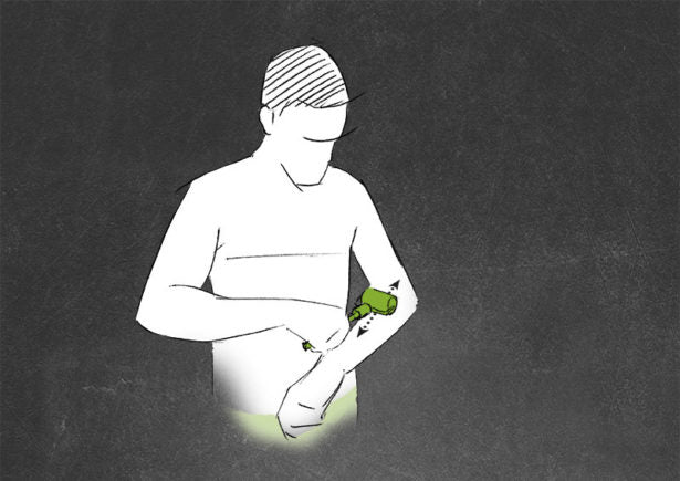 Position the NEEDLEROLLER on the forearm of the opposite side, directly on the skin. Roll along the forearm up and down. Then roll crosswise to stimulate the upper fascia layer.