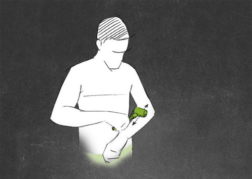 Start in a standing or a sitting position. Hold the BLACKROLL® NEEDLEROLLER with the handle in one hand.