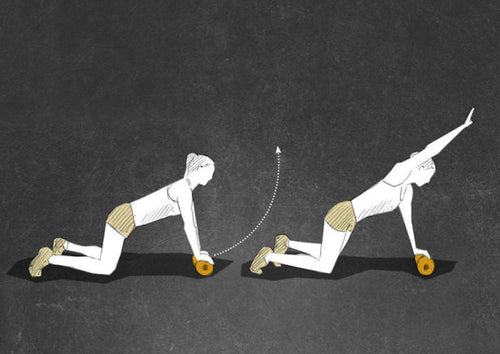 Start on all fours. Grab the BLACKROLL® with both hands. Place the roller underneath your shoulders and your knees underneath your hips. Hold your head in a natural extension of the spine.