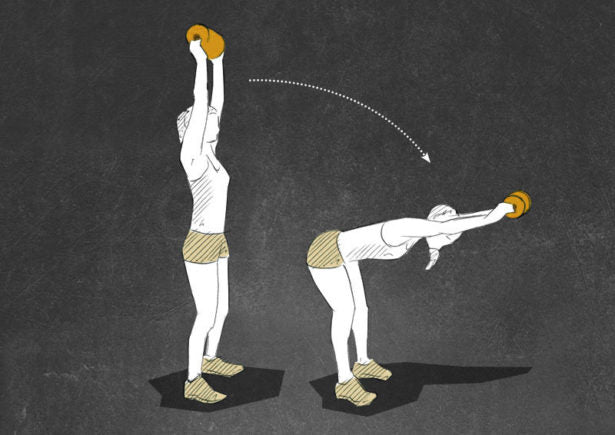 Keep your back straight and pull down your shoulderblades. Hinge forwards from your hips with a straight back as far as possible. Keep both, back and legs, straight. Slowly come back up. Repeat this exercise for 10-15 reps.