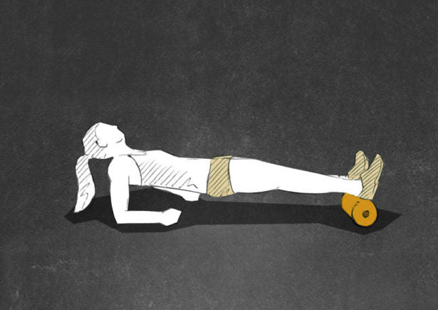 Start lying on your back planting your heels on the BLACKROLL®. Place your elbows below your shoulders propping you up.